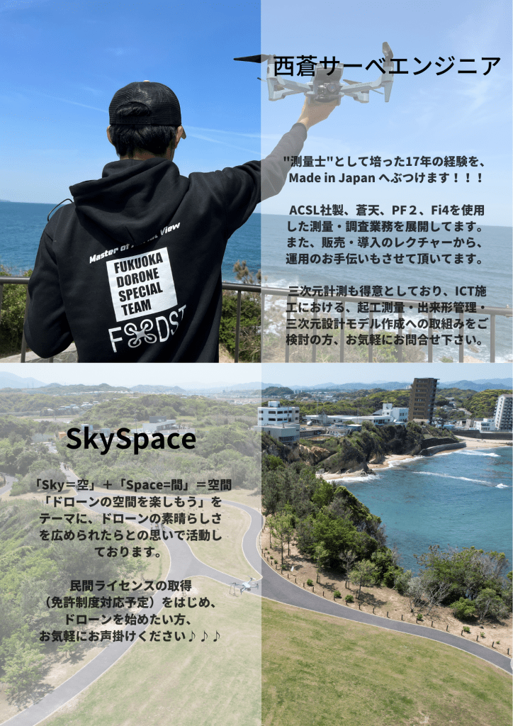 ACSL社製、各種ドローンを使用した測量、調査業務をお手伝いさせて頂いてます。